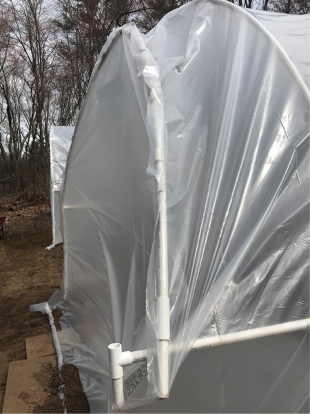 Bad news. I have to make a lot of adjustments on just the first greenhouse I made. I have 5 pvc going across. But no top going across. This wind is killing it!!! The second hoop house is doing fine in the wind! No defects at all because there is more support. I have to take this one apart and make it like the second. Damn it wind!!!!!