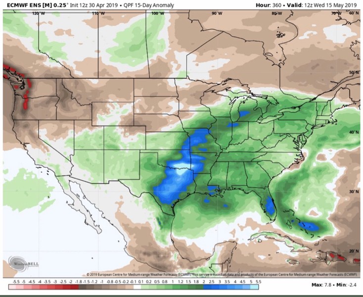 Looks to be wet here on the east coast and out west and to the south. This goes out until May 15th. Lots of moisture during this period! END THIS! Temps will be crappy as well.