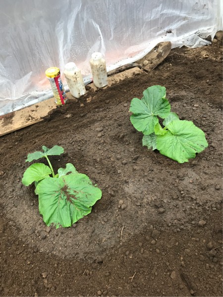 Other two planted! Backup on left. 1928 Daletas on right. Very nice roots on the 1928. I put pumpkin pro, azos, seven and starter paks in the planting holes. They are all watered in with fish and seaweed. That smell brings back memory�s!