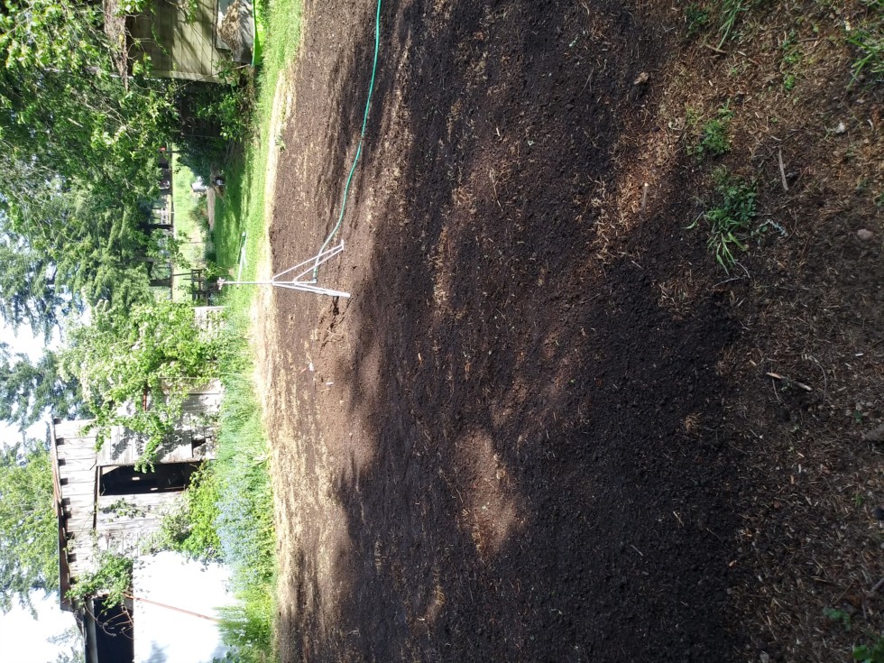 I ended up NOT rototilling the solarized ground. I decided it was too much work. I spread oats clover and turnip seed. I put a thin layer of "horse dirt" on the patch.