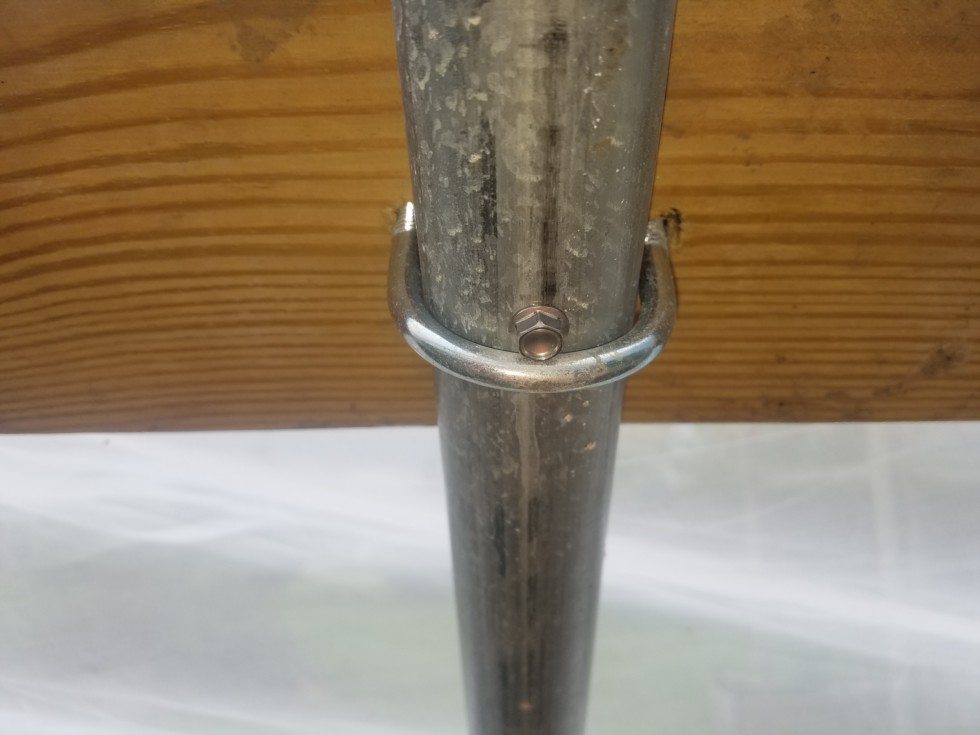 One little screw in every pipe, tightened the plastic up real nice, hopefully help shed some water to. Clamps looked like they had sliding up and down about 6". Order 50 more yards of 1" strapping, out here with 28 mph winds made me paranoid. The screen sides have definitely made it a better pumpkin growing environment