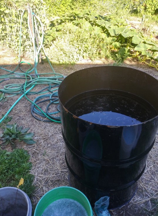 Ran a trickle through the hoses all afternoon. Now I have a barrel of water at 90 degrees. Which means I have two barrels of water at 70 degrees...( if I add an equal amount of well water at 50 degrees.) Works for now. And yeah I looked for zinc etc at the store but hey a little miracle grow never hurt. Its the perfect time of year and meets my needs at the moment. In my opinion. I do plan to use some other good fertilizers at some point. I have some kelp and Holland's blossom/fruit one.