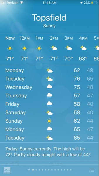 Weather forecast. Tomorrow is chilly. Really cooling down by the end of the week! Good pumpkin storing weather. Sucks that it�s going to rain though.