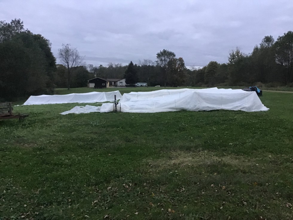All covered for the frost in the morning, if all three pumpkins make it another six days I will be going to Hamilton next Friday, the OVGPG Saturday and Oakland nursery Sunday.