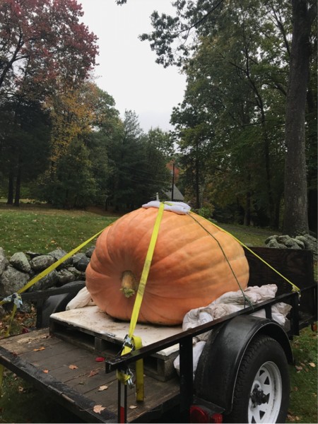Straps are on. Ready to go tomorrow! She tapes 1,002 pounds but feels a bit light. I will be happy with anything! I am getting both pumpkins to the scales this year!!