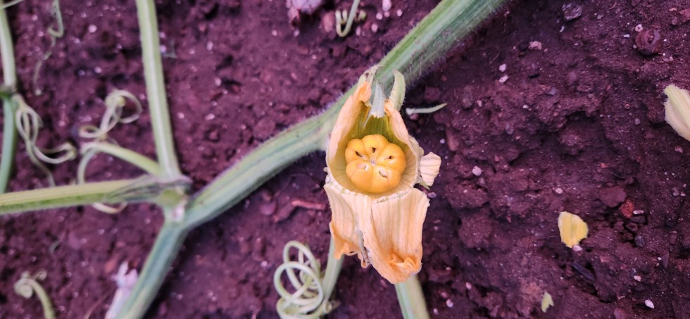 Typical 5 lober.... had to pry open the flower to see and get her open. Would not open on its own. Its is definitely time if not it would abort so if it aborts at least I tried to force pollination. Sad to say. Nature. 2 females showed one at 22 foot and other at around 24 foot down the main. 22 to 25 secondaries behind to force growth. Shit more baby pumpkins on the secondary tips all over which i been pinching off. These sedondary and tertiary vines are very vigorous and powerful is how Travis grew his WR on. See what and how the plant grows itll show you its way and its long Journey of how you can to improve. Also never will there be a healthy fruit pumpkin weighing more than 3,000 lbs. Never happen wild or in a green house. Ian brothers will come close but will never happen. 2900 lbs be heaviest ever recorded healthy fruit In the next 30 years.