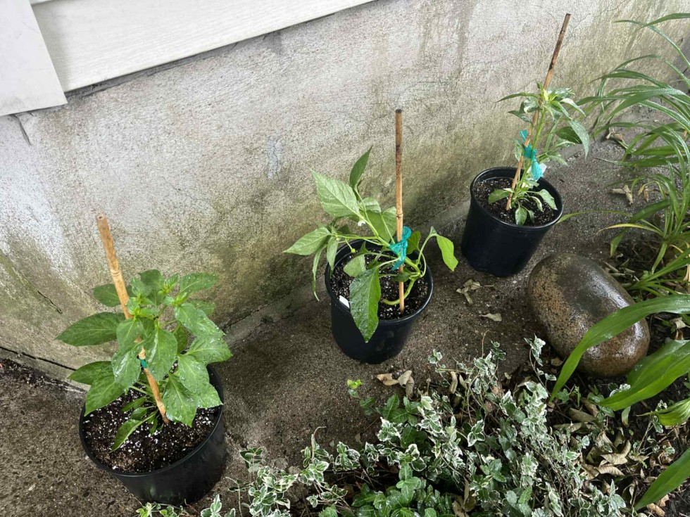 On Sunday I picked up some pepper plants on sale-Two Fish and one Poblano. I am growing them in containers at home. Two gallons is not the ideal size, but I will keep on top of the watering and fertilizing. I really liked the color, heat, and taste of Fish Peppers.
