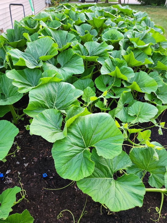 I think we're about full in the 150 sf bed. There are three potential female blooms to make a viable fruit positioning. With some good weather and good luck I will pollinate two of them by the weekend.
