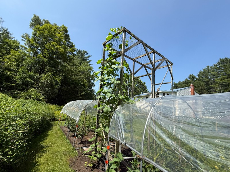 The 135 Jutras long gourd remains aggressive and is around 18 feet in length. Hopefully we will be pollinating by the end of July.