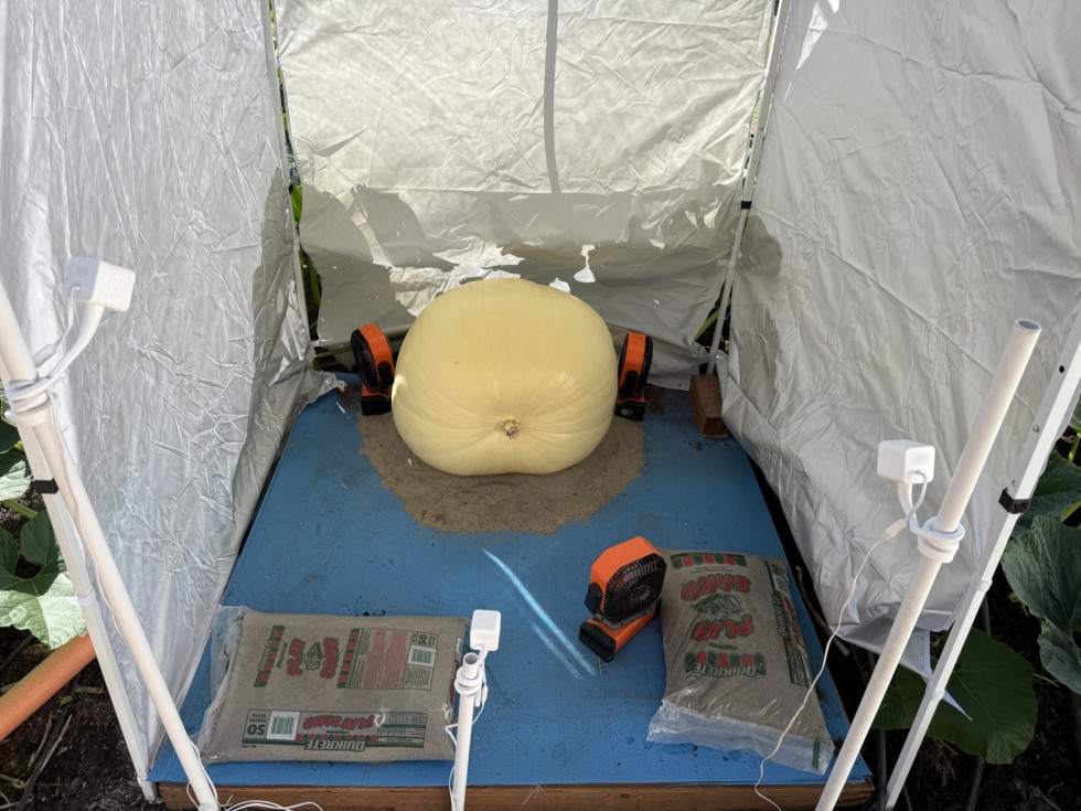 Put up the canopy today to shield the fruit from sun. The fruit is about 200 lbs at DAP 28.