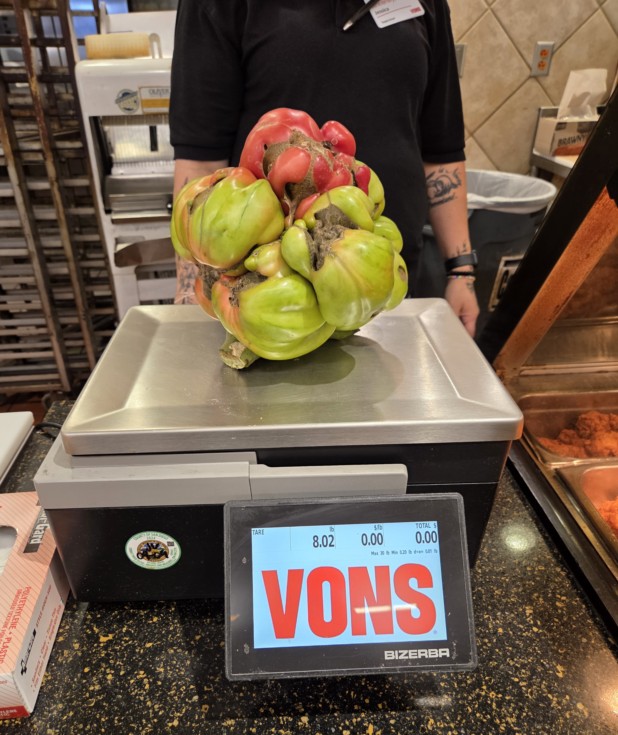This is from the 9.06 Brown seed. Interestingly, this 8.02 fruit is also a new cross that was pollinated using pollen from a nearby 5.95 Konieczny plant. Man, I really hope there are lots of seeds in there.