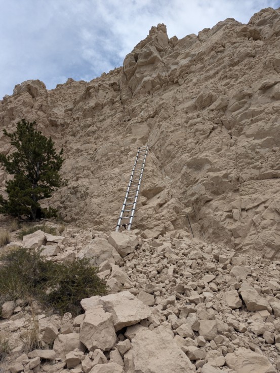 I spent the last week on top of the ladder digging pretty crystals while my tomatoes went crazy. It's a one hour drive on a nasty little two track road then another mile hike to this cliff. Relaxing vacation time. ;)