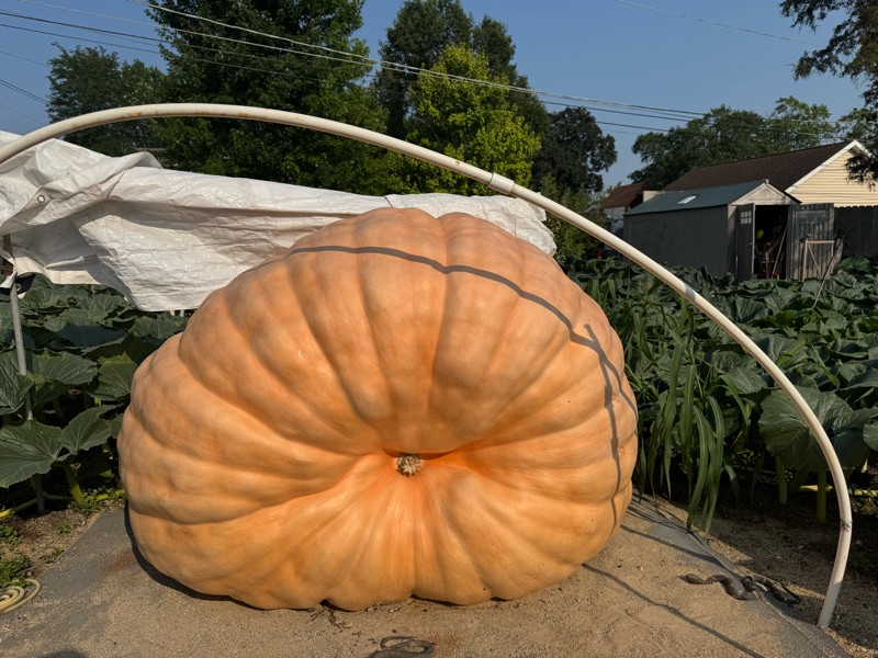 The 2301 Pugh at 55 DAP �OTT370 about 1170 pounds. Lost the stump a couple weeks ago and a couple side vines but still doing pretty good. She's gonna look great in the front yard. Has a nice true pumpkin shape