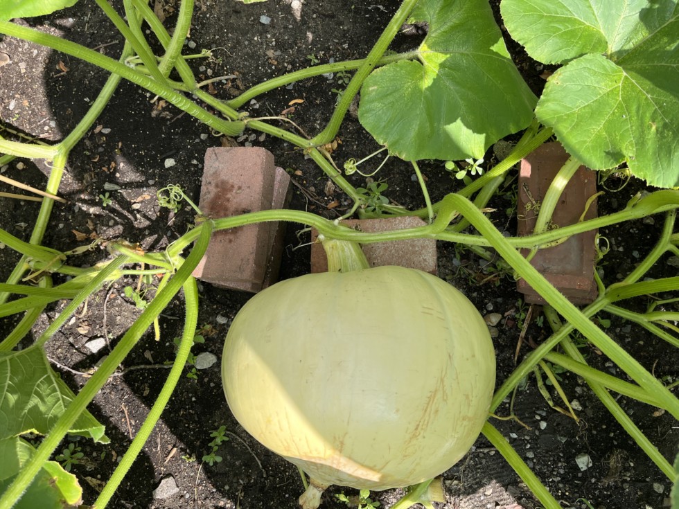 It feels like a new season this morning with cooler weather and the day off. So relaxing to be working in the garden with no rush. The pumpkin is leveled off now. It's still growing quickly so hopefully it doesn't abort in the next few days.