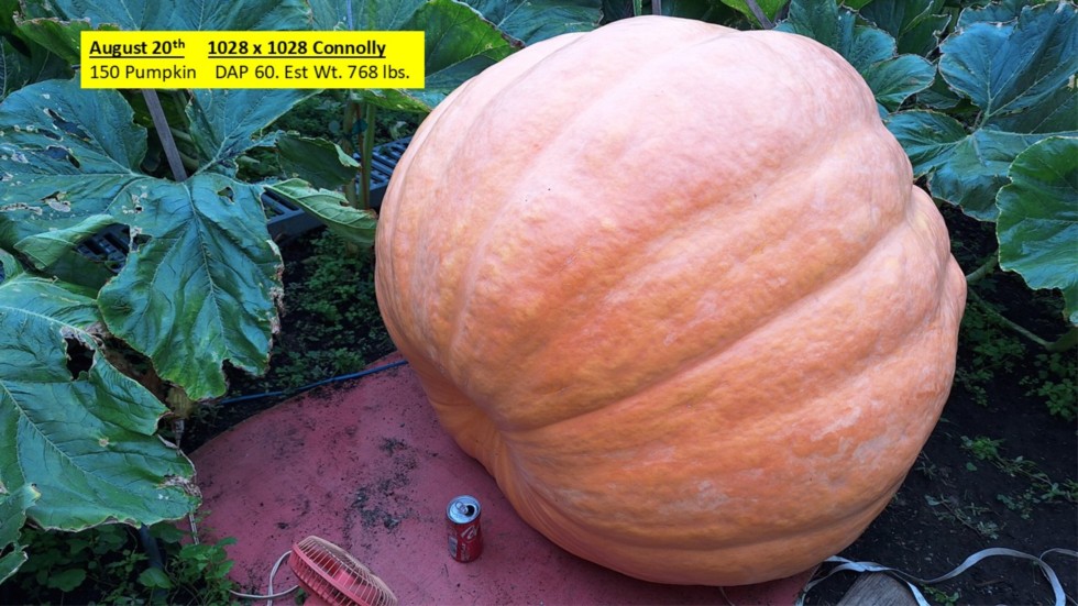At DAP 60 our 150 Pumpkin is putting on 12.1 lbs/day and is estimated at 770 pounds by the new chart.