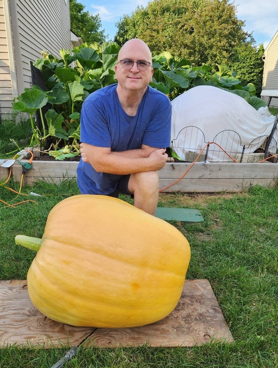 I cut off the second pumpkin growing in the 150sf patch tonight. It was overdue for removal but once we knew we weren't growing a primary that would hit 750+ it became less appealing somehow. 171.6# for this one. The other one is nearing 500#, but slowing up. The weather is so up and down, it can't be helping with growth.