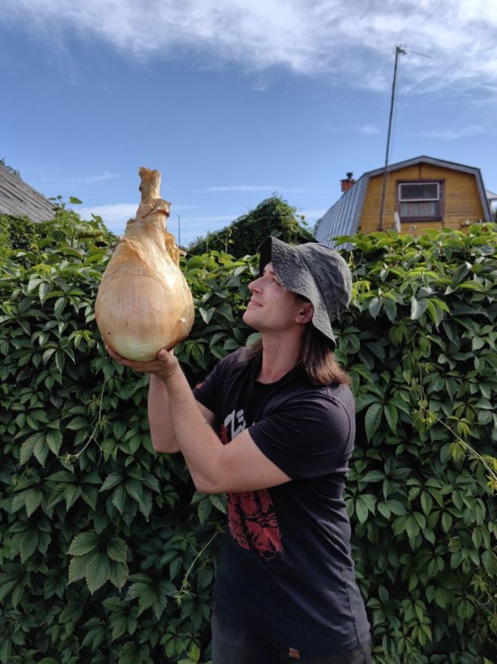 Giant onion weighing 5.03 kg (11.08 lbs) from Alexander Chusov (Moscow) There are also many onions weighing 3 and 4 kg, but the one in the photo is currently the largest