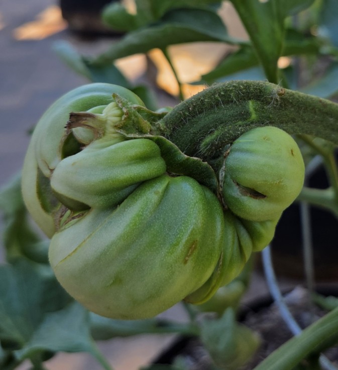 The huge M2D bloom didn't fully take. The outer ovaries didn't pollinate so it's now a bit of a misfit. Not expecting much, but will let it go cuz it's so late in the season.
