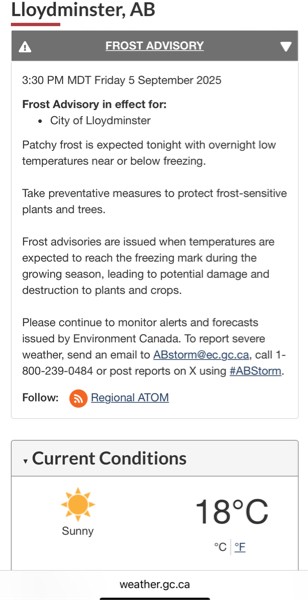 In the past 26 years of growing our frost date has remained the same. There's been a few odd years we've missed it in the first week of September but it's usually by the 9th.