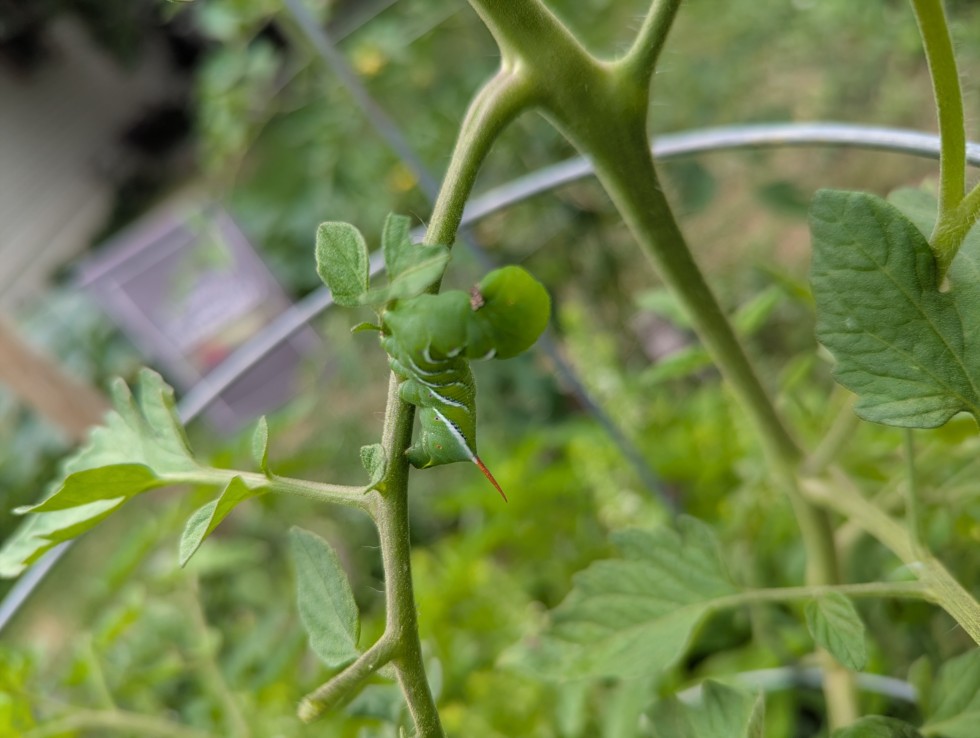 I probably wouldn't of seen this (eat my tomato plants) hornworm if it wasn't for the tell tail sign of the poops on the leaves.