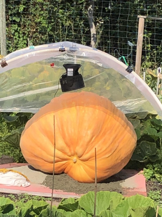 Fan and pumpkin inching closer together. Day 80 today and it's doing a solid 8 lbs a day right now.