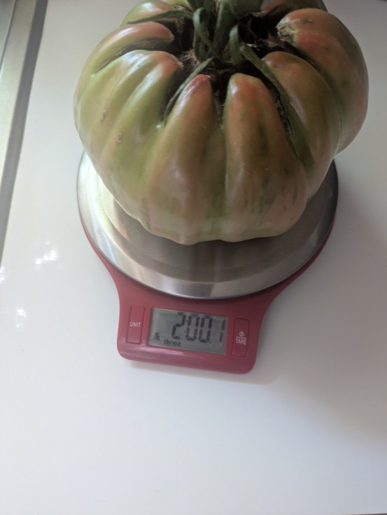 I got a couple more tomatoes on a plant my wife saved from me throwing it away. They were doing fine until the top skin pulled away from the stem....really weird, so they are damaged.