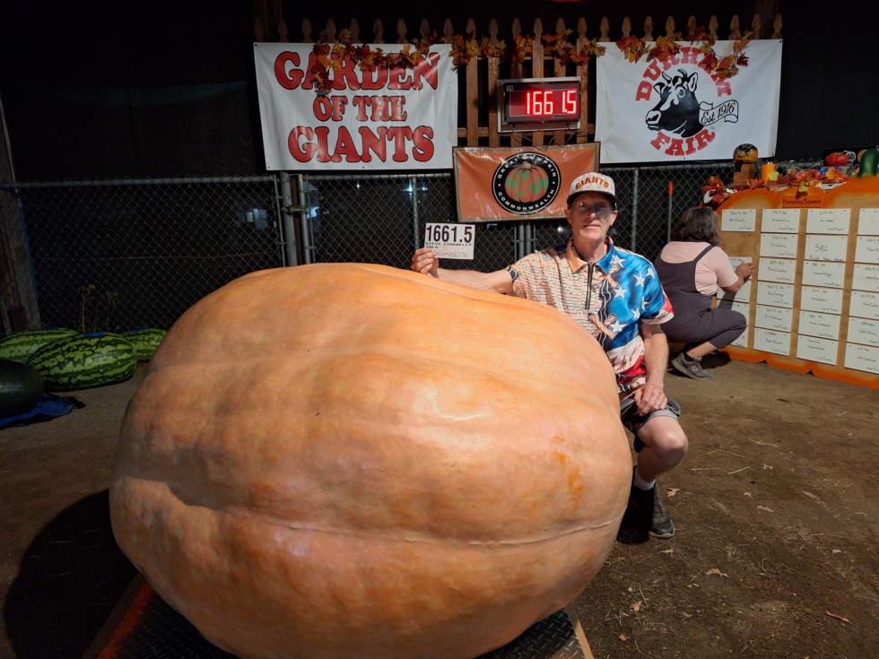 Nice warm September 23rd night in Durham, CT We can in 5th place out of 29 entries with a 1661.5 pound Giant Pumpkin at ther Durham Fair Weigh off. Long drive. Got home around 12:00 midnight. It was grown from the 2551 x 2551 Ford cross on a side vine.