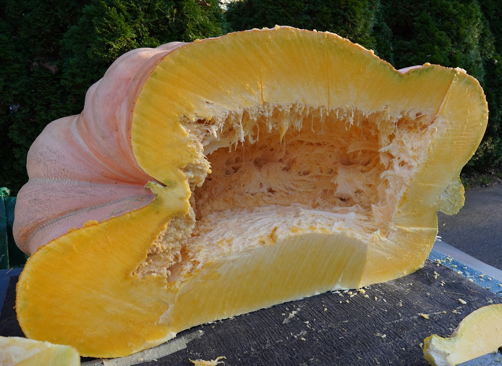 While the "Fish Egg" / "Edema" nodules was the reason for the damaged nature to the pumpkin, however looking internally on the blossom end side of the pumpkin there is an area of hardened nodules that I have seen before and seem to be common. What they actually are or what these are composed of, has a few theories by growers. Typically, these are a welcomed sight and seem to help offer additional structural integrity to the pumpkin.