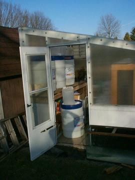 These barrels are in my 8 x 8 greenhouse. They will hold the water for my plants. The water will be warmed in the sun, and then pumped to the patch as needed.