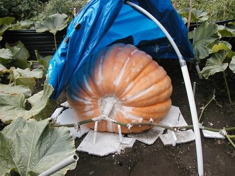 Well here I am in the patch with El Guapo. At day 57 cir. was 128" for est. of 477. Just a side note, we have had a lot of rain the past few days and as of Sept 4th it had grown 4 full inches in cir for an est weigh of 532
