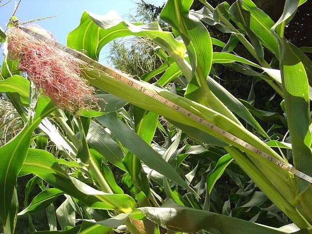 Most of the ears are about 2 ft. Where is connects down into the stalk is a bit longer than 2 ft. All the ears are long and narrow. I'm hoping to get some viable seed out of these. I'm not exactly sure if the cobs are as long, but we'll see when I harvest them.