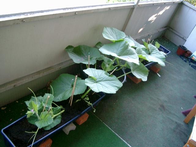 Some pics of an attempt to grow pumpkins on a balcony. Could not start seeds before June 5 because I was abroad from Jan. to May.