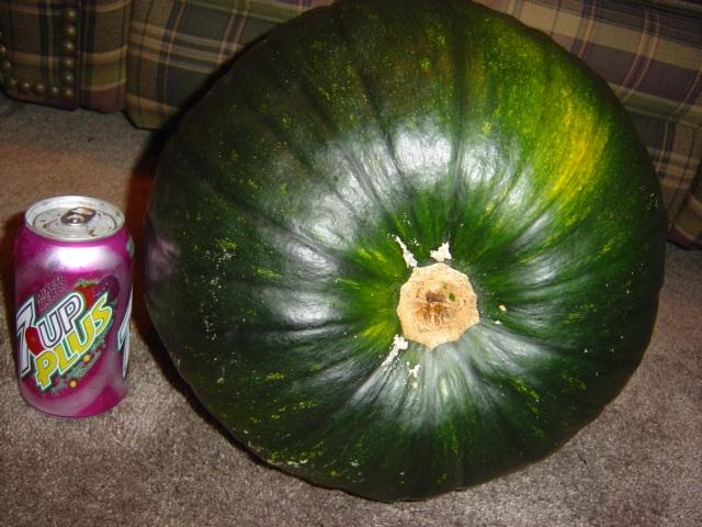 Here is picture of the bottom of this unusual round vegetable marrow. The marrow weighs approximately 20-25 pounds and 36 inches around. Feels pretty dense for the size.