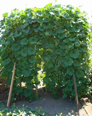 This is another one of Leonardo's long gourd towers. It has one plant growing on it........the 126.5 Jutras