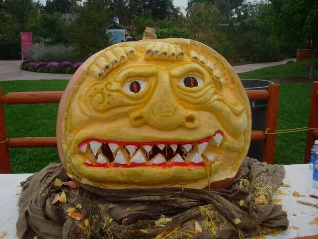 this pumpkin is trying to smile for the camaras while the creepy hands are streching his face