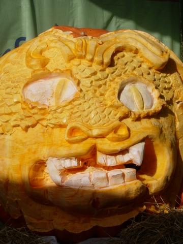 this 1100 lb pumpkin grown by clarance koch , was carved at brookfield zoo in brookfield ILL this too artist steve dahlke 4 hours to create this cool face it lasted a week and look very creepy