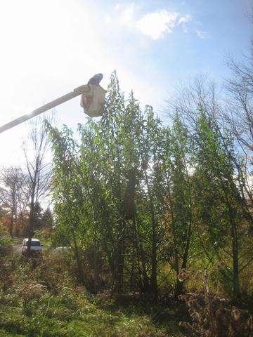 New York state gardener/farmer Jesse Eldrid specializes in growing heavy, tall, and large vegetables and annual plants. On October 25th, 2007, after a long summer of working, watching, and waiting, he finally contacted county officials in order to obtain a legitimate measurement of the Amaranthus Australis plant he had been growing since the beginning of the year. When Jesse contacted the local bureau of weights and measures, he knew that he had a record-breaking plant -- but he didn't know that his plant would be almost twelve feet (11.98) taller than the the goal he had set for himself in the existing record: the official measurement of the plant, he would learn that afternoon, was 27'10". In the early Spring months of 2007, Jesse received several amaranth seeds from the USDA NCRPIS (United States Department of Agriculture, North Central Regional Plant Introduction Station). Although one wouldn't think it from the size of the mature plant, Amaranthus seeds themselves are actually quite small (smaller than the head of a pin.) Germinating them was fairly difficult, however. Once he managed to get a handful of young plants growing well, he knew one of them was destined to be huge. On May 15th, when Jesse transplanted the young seedlings outside, they started growing rapidly. The plant that grew the fastest also happened to have the largest trunk (measuring almost five feet around) which may have helped the plant grow significantly taller than normal. (An average "trunk" would have a five to eight inch circumference.) As the temperatures rose, the plant grew faster and faster. Competition, too, was on the rise. In Spring, Jesse shared a small number of cuttings among friends, and their plants had begun to take on considerable height at around this time, as well. As it turned out, many of these cuttings exceeded the 15' benchmark, some even stretched to 20+ feet. In the early autumn, near the end of the amaranth's li