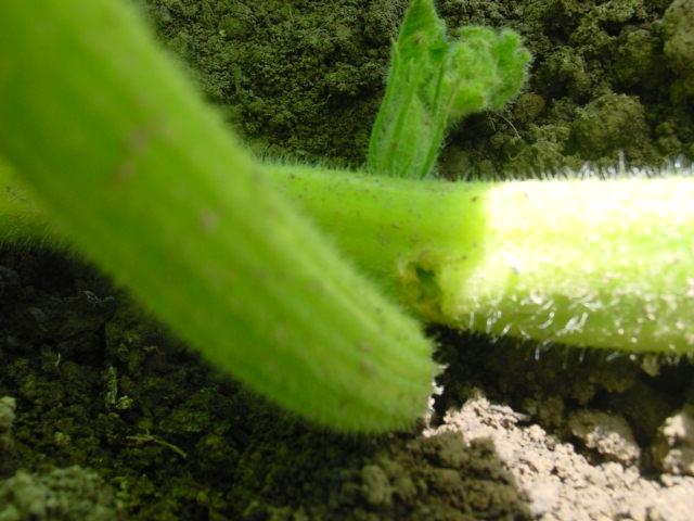 this is opposite side of chucks werner plant. this hole is same size and about one in closer to the tip. Tip is still green and upright (not wilting but not grownig either)