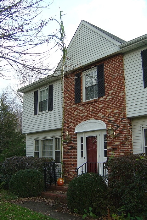 Took down my tallest corn plants. The plant was shorter than I thought. It was really hard to tell how tall it was because there were multiple, large bends in the stalk. I measured straightened it out and the plant measured out to 25 feet 9 inches.