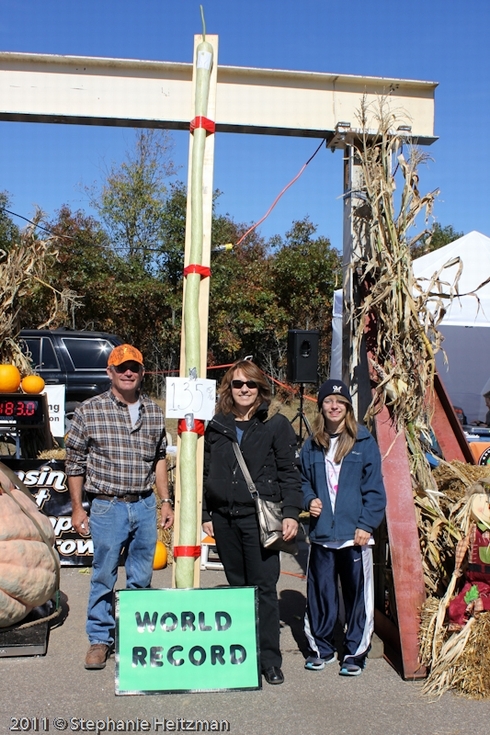 Glen, Margaret and Rachel Martin displaying 2011 World Record long gourd grown in Wisconsin.