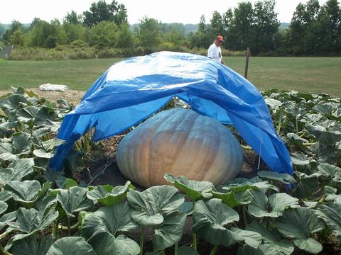 On the day of our visit (09/07) this pumpkin had an 170 inch circumference! It is growing on Joe's 805 seed.