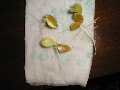 Filed the sides and soaked, this is after 3 days in the bag on top of the tv. could'nt believe the roots. these are just seeds from the pumpkin I grew last summer.