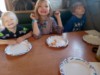 Kittens: 2 black & 2 gray. names: Doggy(Brandon chose for cool black face with white around eyes one),Meow-e(Luke chose for black face one), Flower Pot(Susan chose for gray & white face one), and T-Rex(Joel "Fred"ric chose for gray face one).