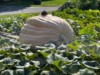 The 1977 Rea pumpkin is 60 days old in this picture taken two days ago. Gains slowed to just 14 pounds per day over the ten day period. Cool wet weather and powdery mildew haven't helped.