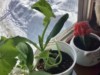 My field pumpkin's leaf is really pressing against the window.