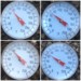 Soil temp readings. Left are inside hoops. Right are outside hoops. Looks like my hoops increase temp by only 4-5 degrees at approximately 6 inches deep.
