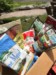 It was brutally hot while we were away so the jury is out on any damage to the tomatoes and pumpkins. I know there are no pumpkins at my house. Vals grow boxes and bags are doing well. Maybe I should plant pumpkins in them next year