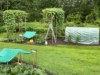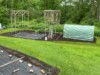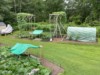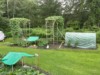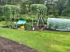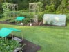 Old patch is starting to get there as well with the hoop on a 400 square foot space and compost on both long gourd trellises. The spot on the right will be finished later and is for the tomato greenhouse.