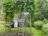The 146 LeBlanc near the greenhouse is currently ahead of the other one and is about 9.5 feet long. Around 5 more feet and it will be at the top of the trellis.