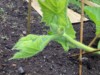 Moving day, the 1995.5 Hoornstra was almost out of its hoophouse anyways. Looking good and I've got plenty of bamboo stakes and some silt fencing to go up to protect the young plant from our inevitable coastal winds that arrive in late May and early June. Until the plants are more securely rooted, we battle with the wind and will be ahead of the game.